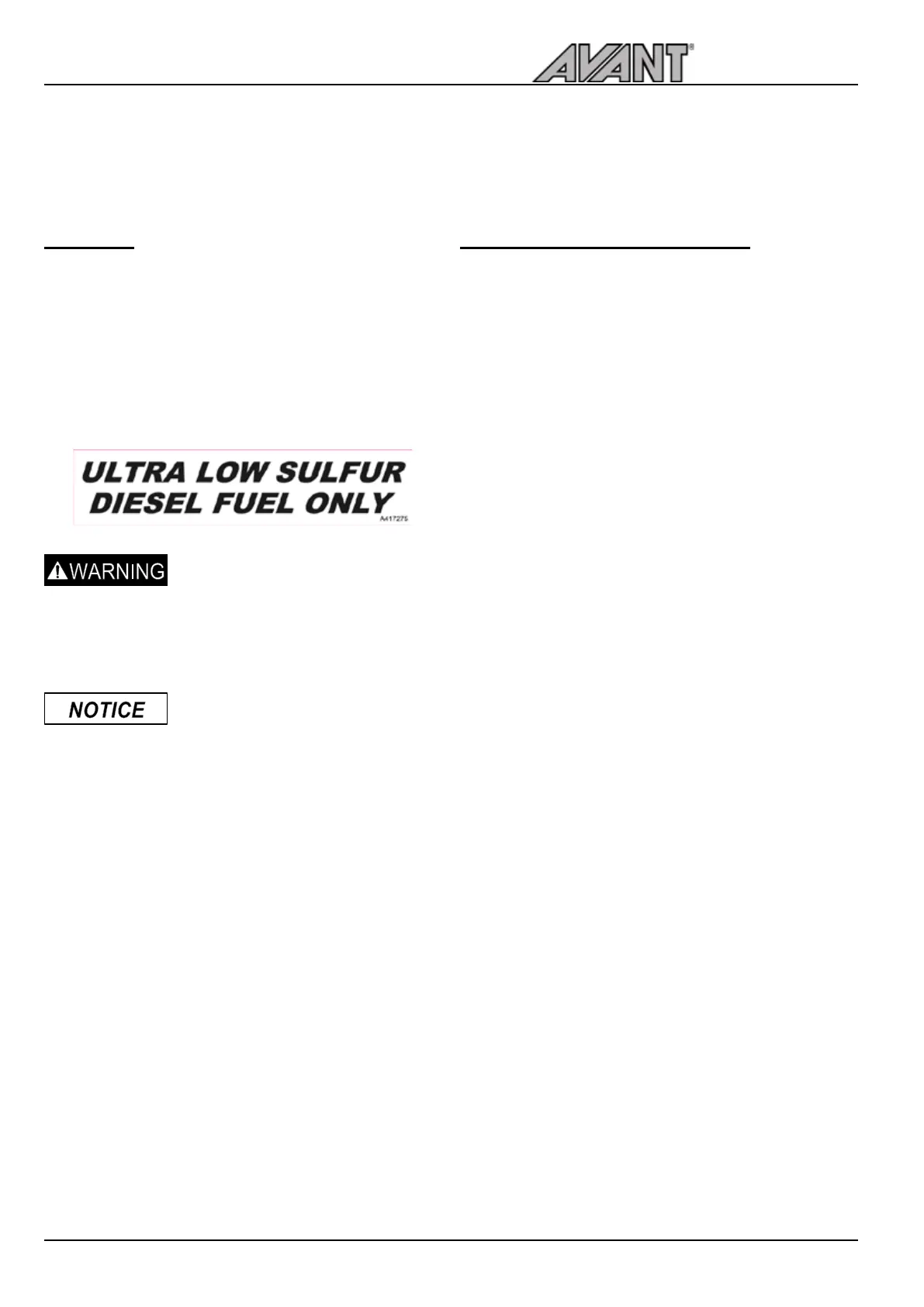 Use only ultra low sulfur diesel fuel. Use of other fuels is