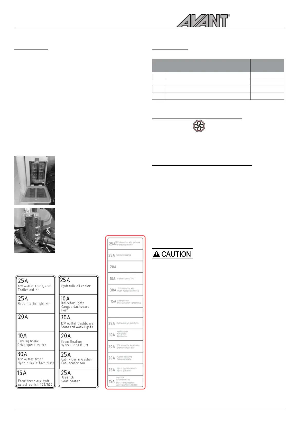 the 25A fuse of the oil cooler fan. Contact Avant service if
