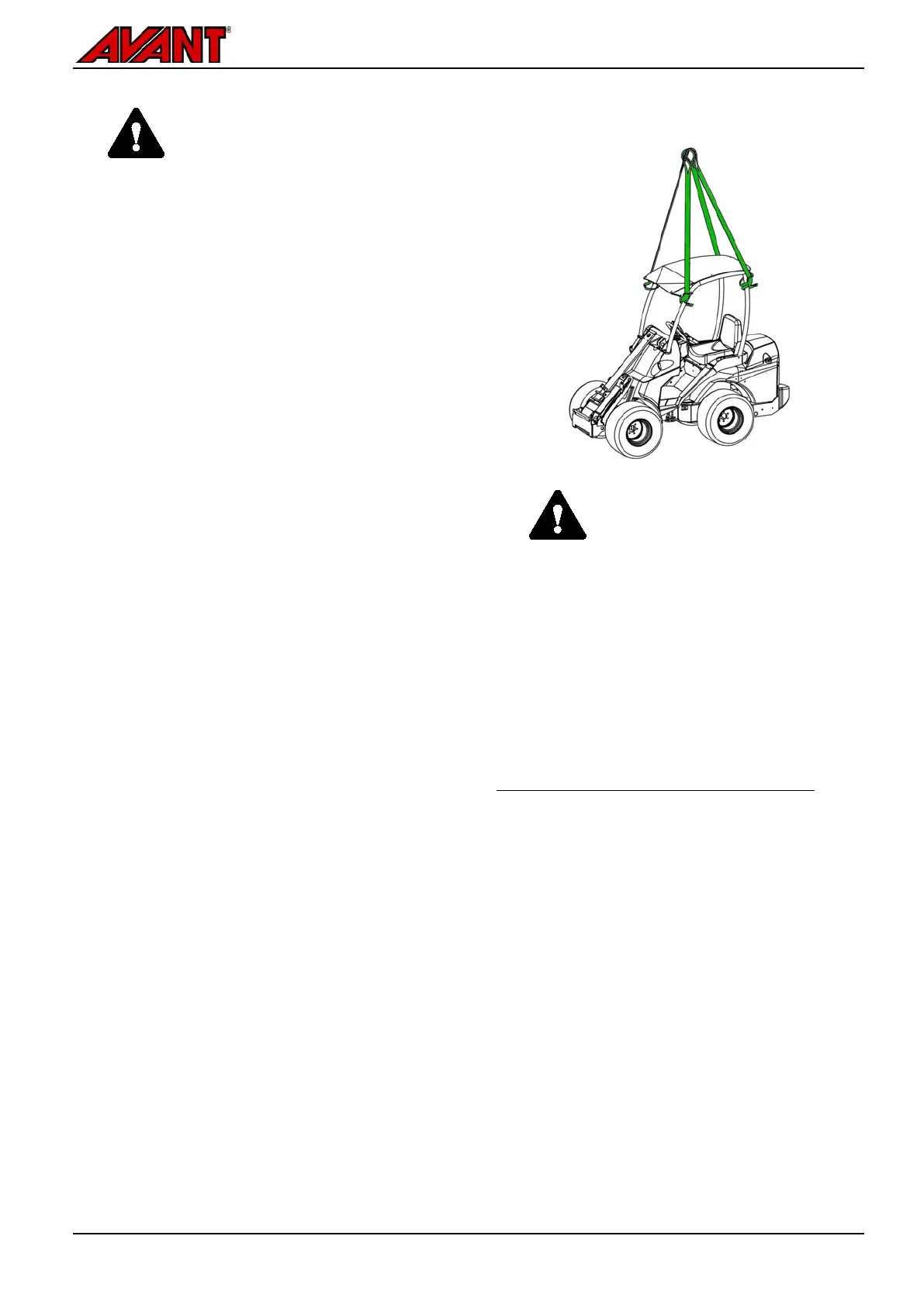 Avant 755i 760i Storage, Transport, Tie down points and Lifting