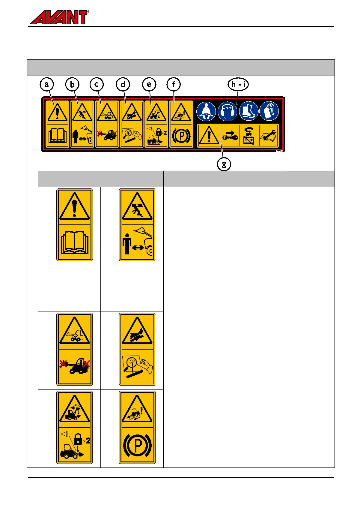 Table 2 - List of safety labels and markings on the loader