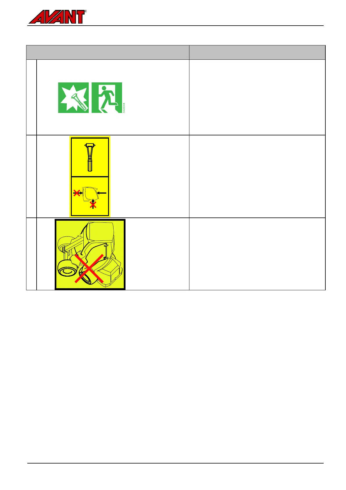 Table 4 - Additional decals on loaders equipped with a cab