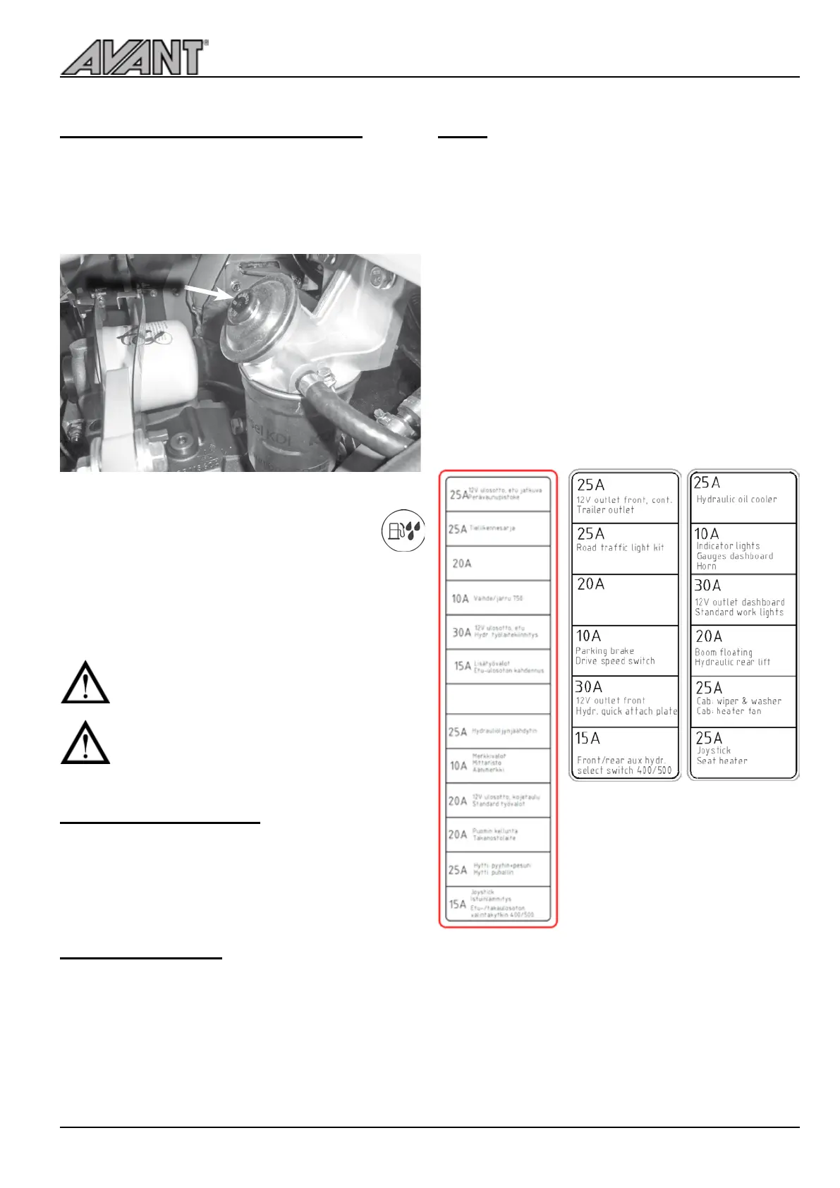 Avant 760 is equipped with separate fuse boxes: