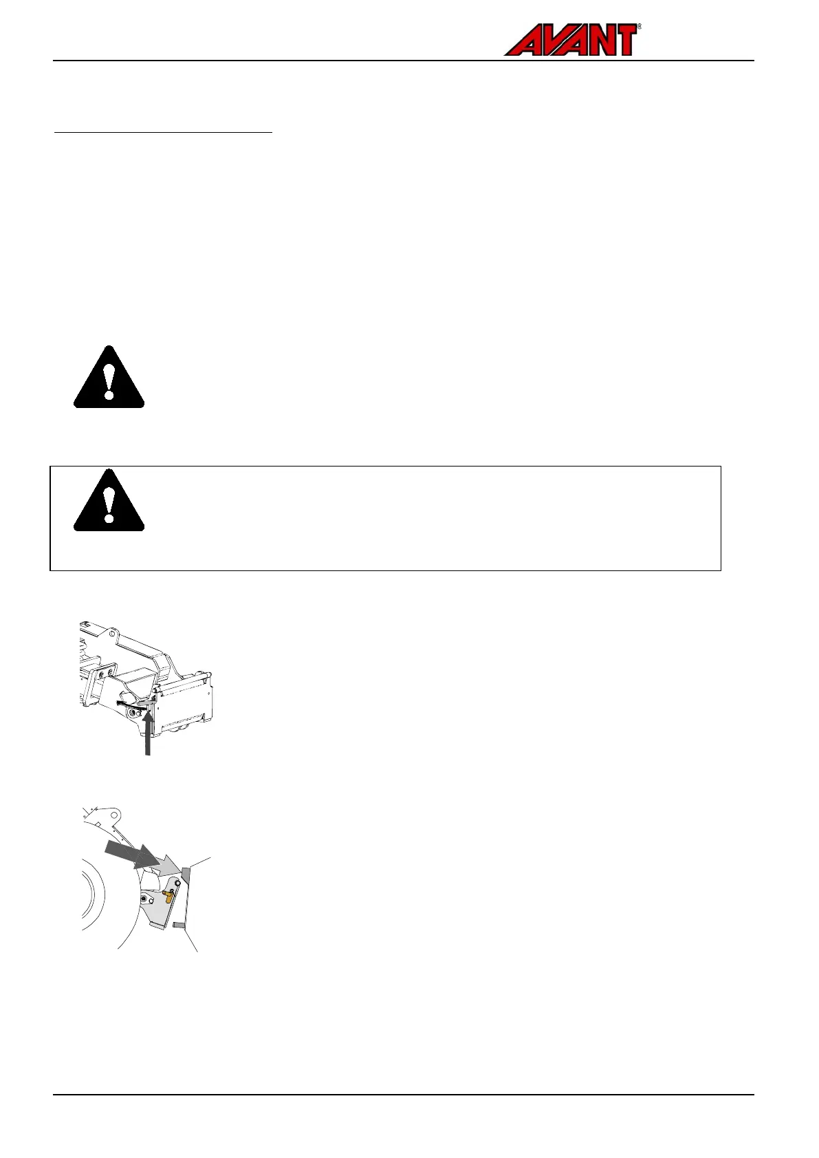 and the boom must never be lifted when the attachment has not been locked. To prevent hazardous situations,
