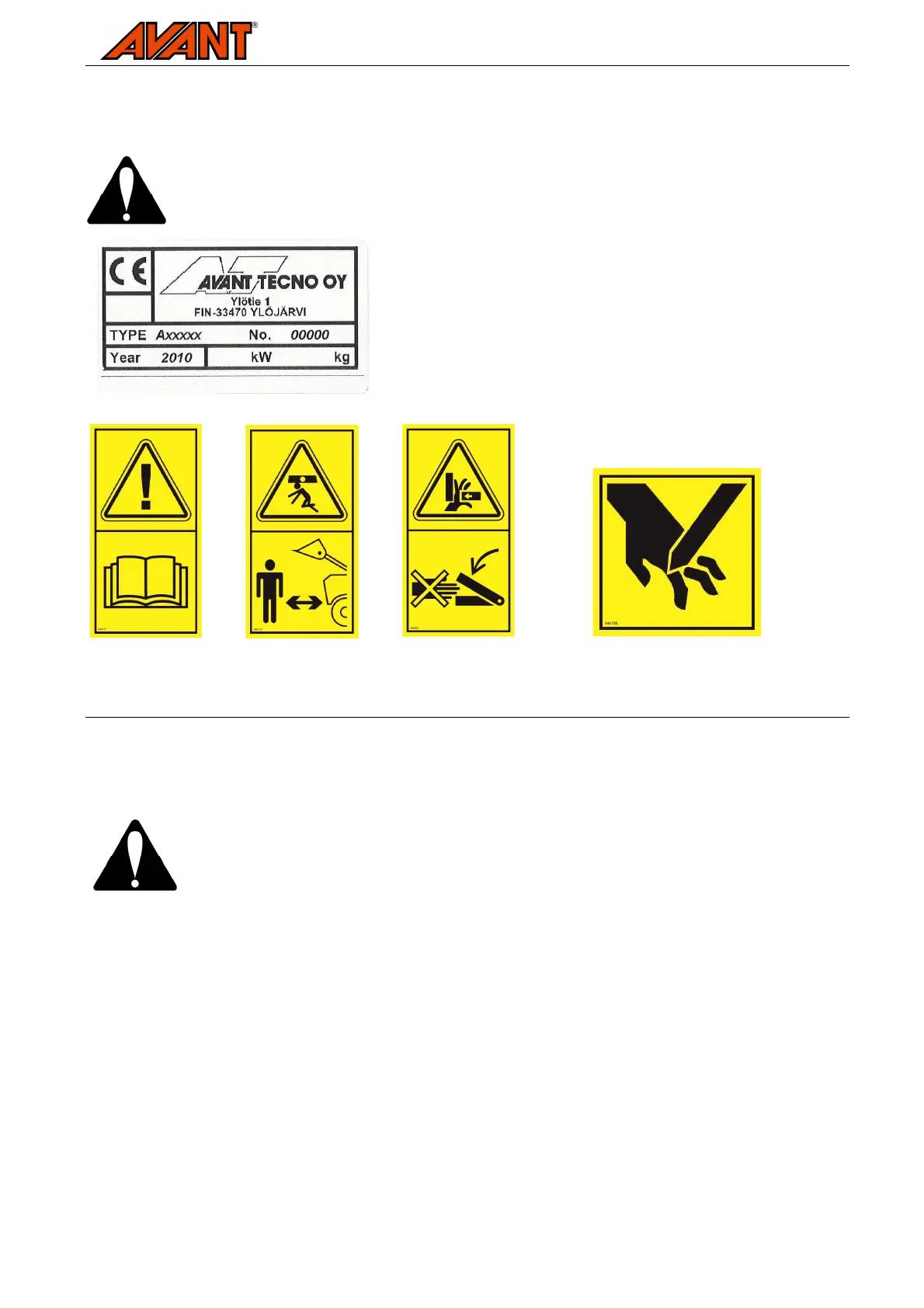 Shown on the following page are the labels and markings, which must be visible on the equipment. Replace