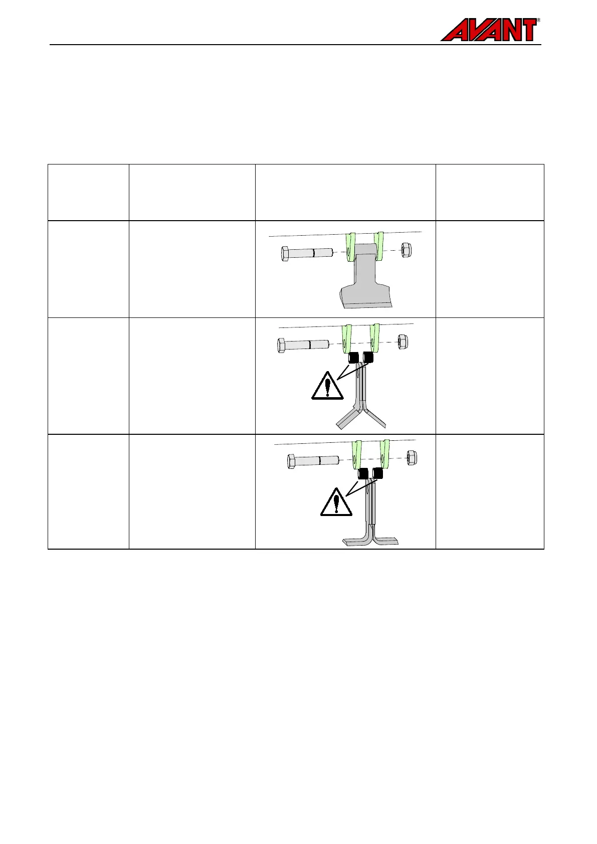 some operating areas or conditions different blade types can be used. Contact your Avant dealer for new