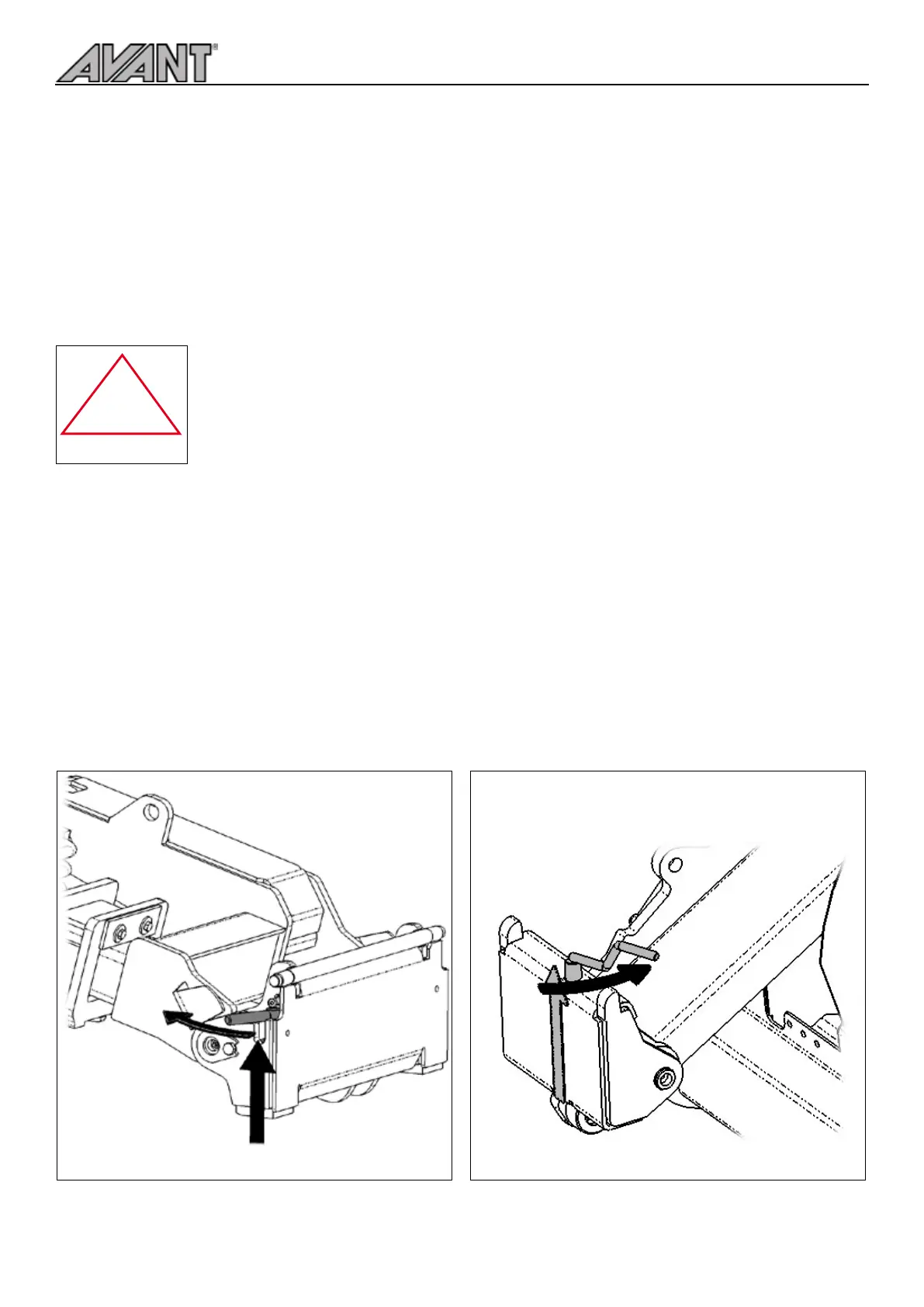 Coupling the attachment to the loader is quick and easy, but it must be done carefully. The attachment is xed