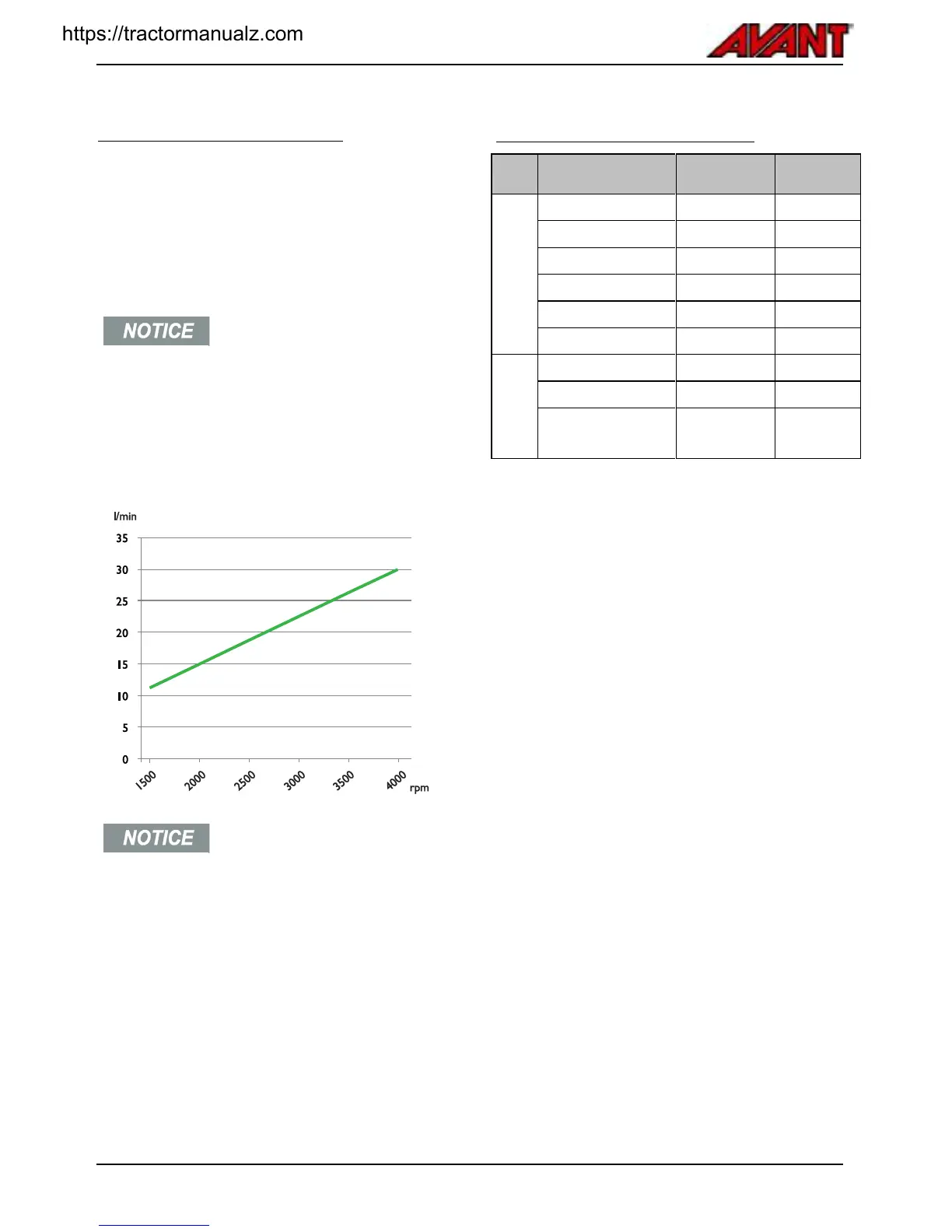 The graph below shows auxiliary hydraulics output