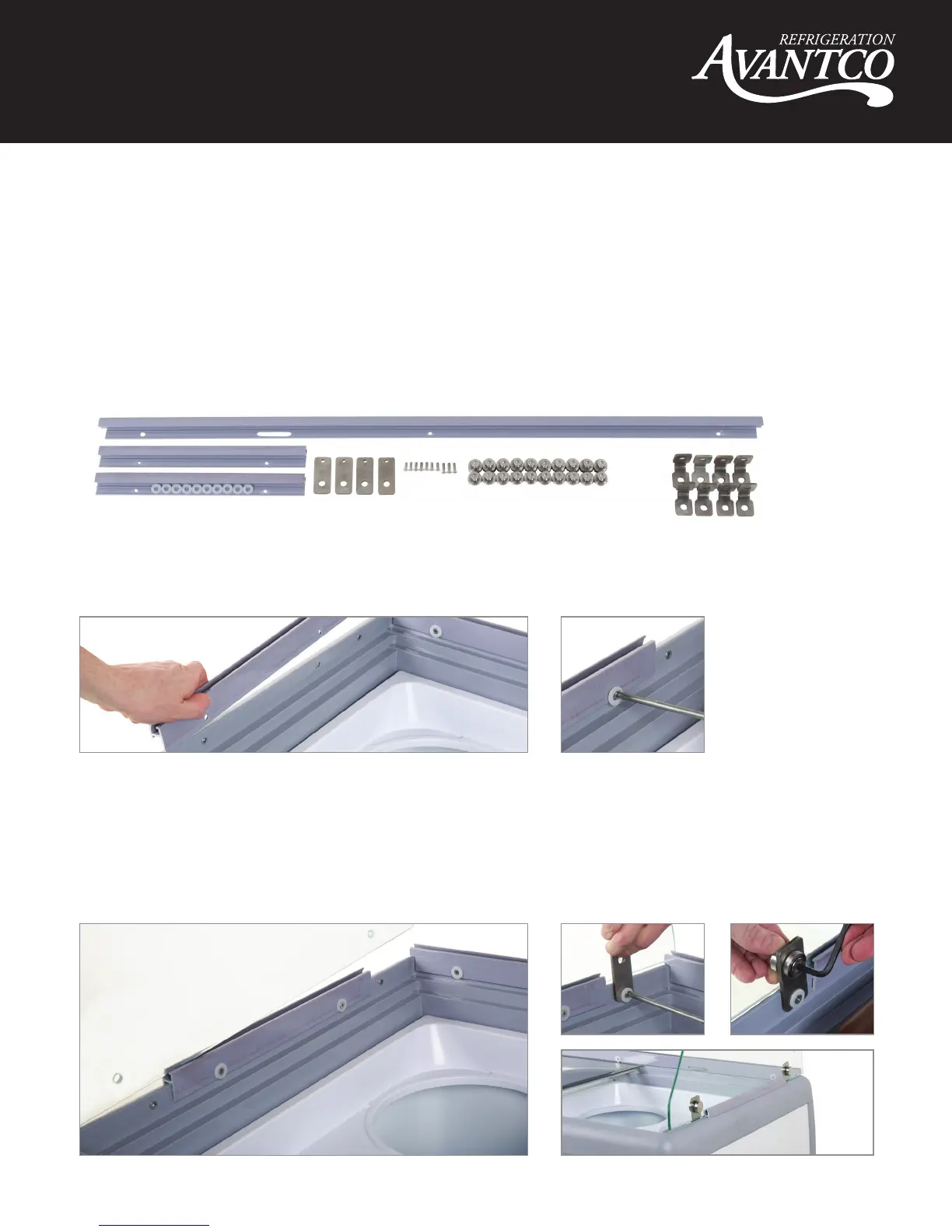 1) Install the 3 plastic channels along the sides and front of the cabinet using the