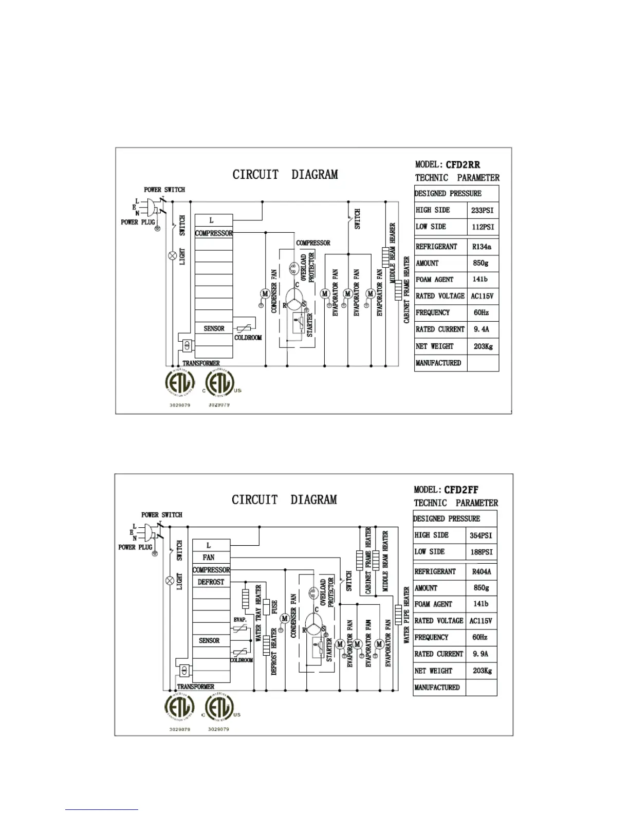 2.3 Two door refrigerator: CFD2RR