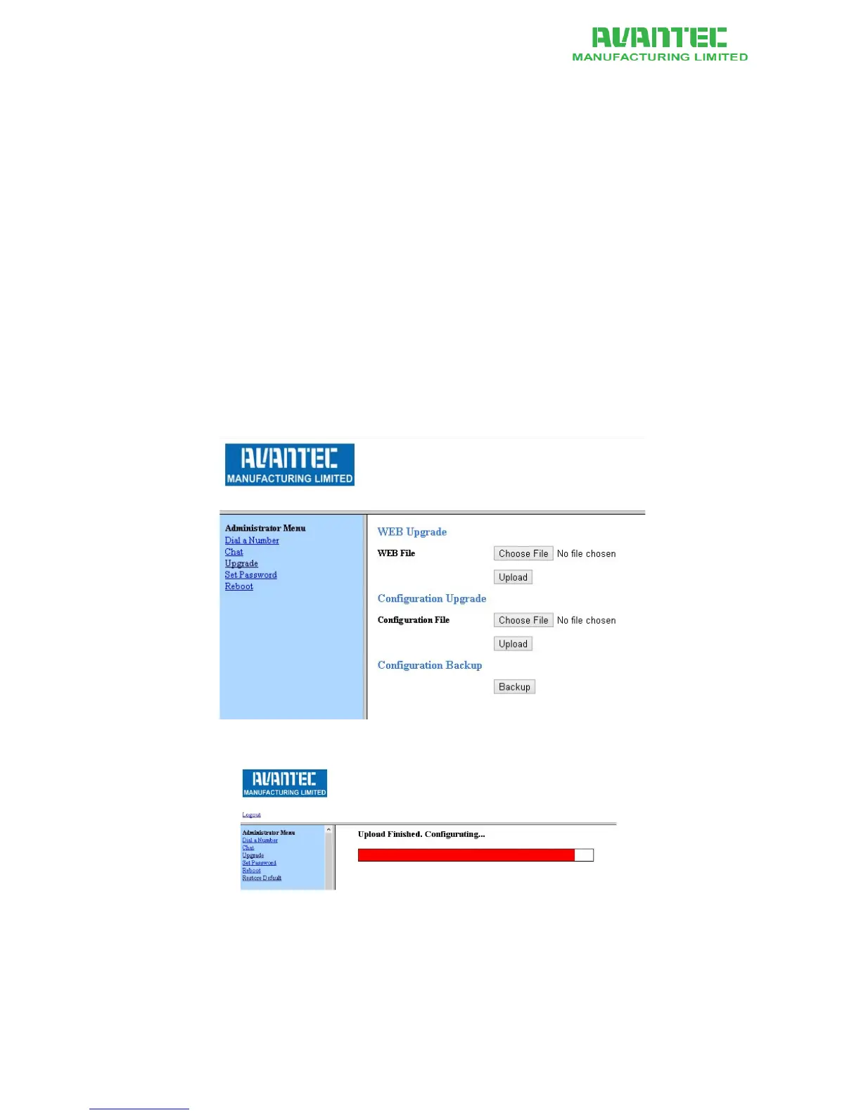 Figure 10 - Firmware upgrade, User Configuration Backup / Restore on Web Portal