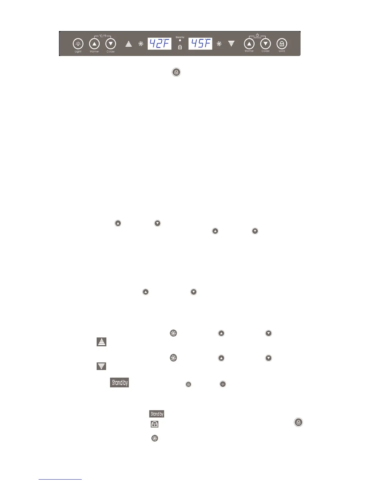 symbol (right side) are for lower zone of the wine cooler.