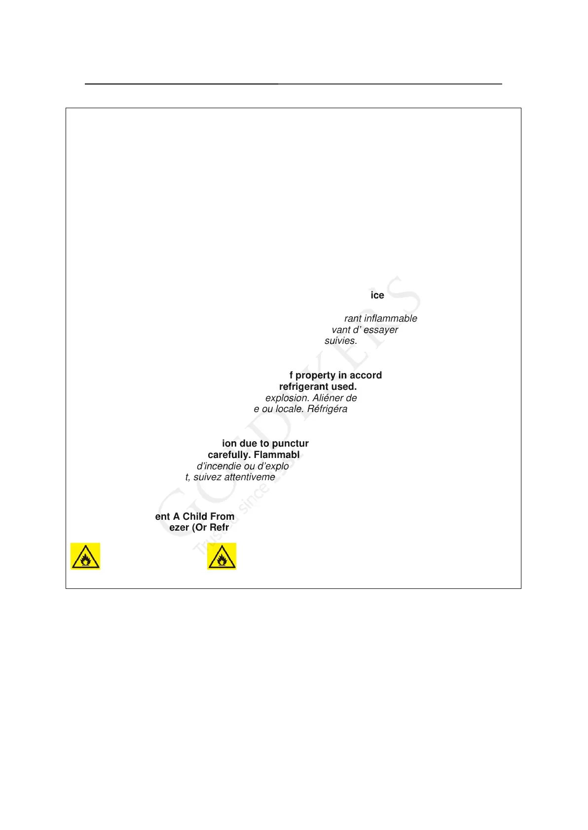 AVERTISSEMENT - Risque d’incendie ou d’explosion. Réfrigérant inflammable
