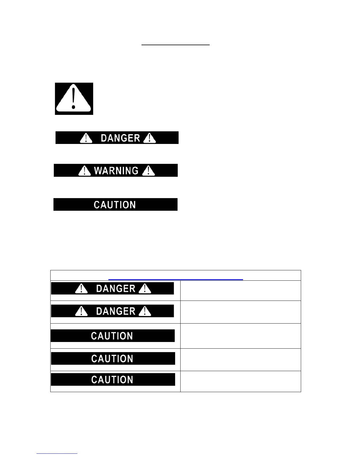 Alert Symbol and either the wards” DANGER”, “WARNING” or “CAUTION”.