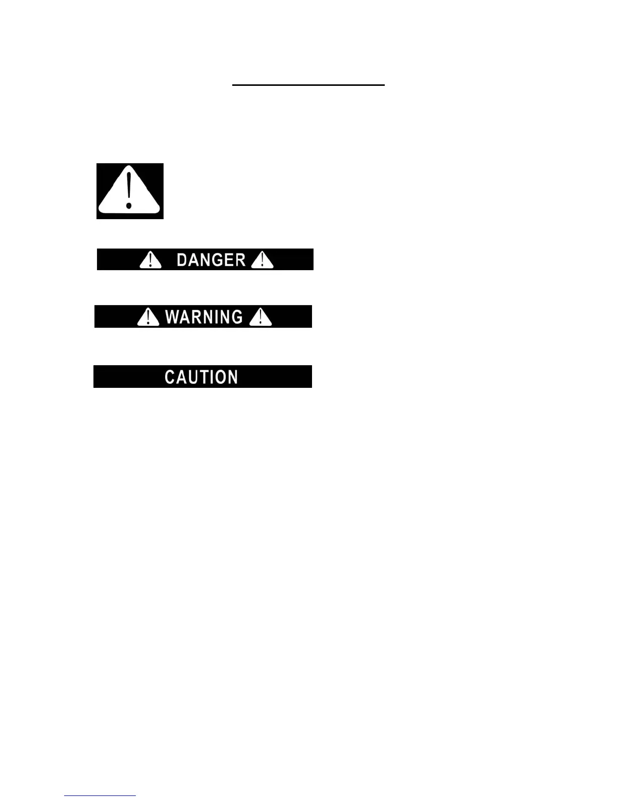 Safety Alert Symbol and either the words” DANGER”, “WARNING” or
