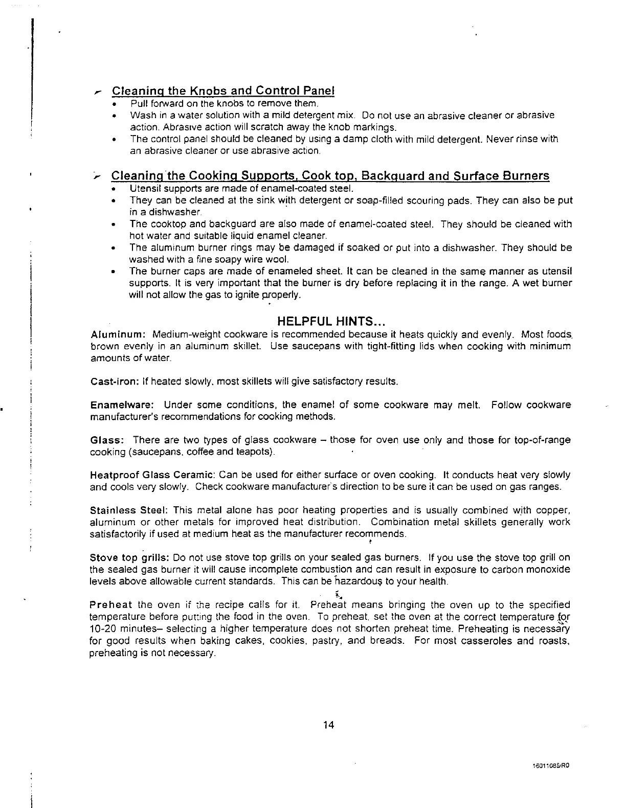 Avanti DG24CSS - Helpful Hints; Cleaning the Knobs and Control Panel