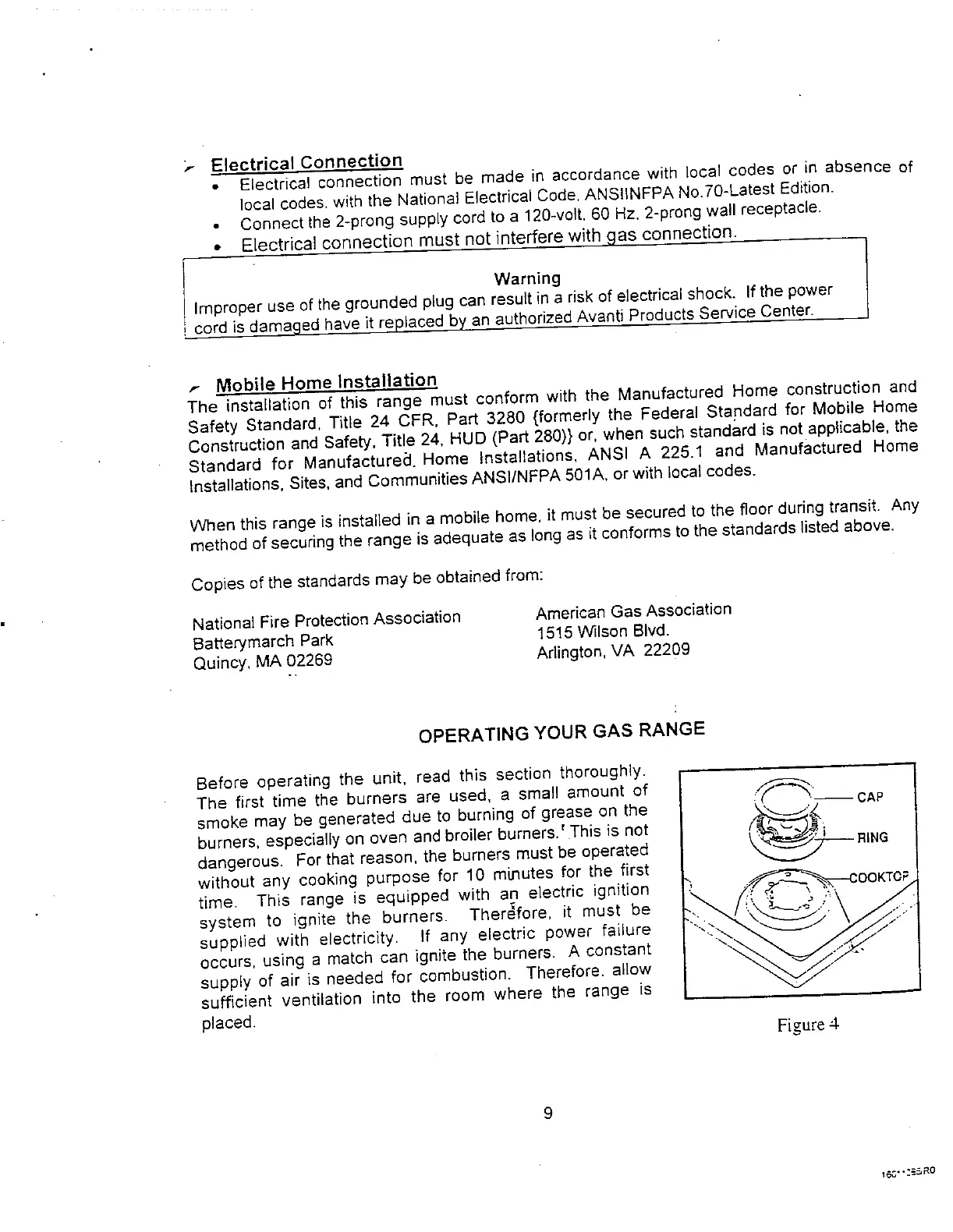 Avanti DG24CSS - Operating Your Gas Range; Electrical Connection; Mobile Home Installation