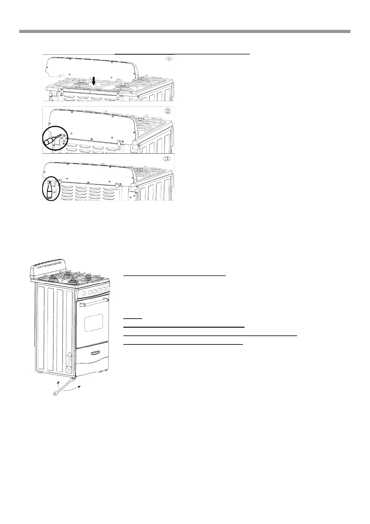 The range is equipped with 4 LEVELLING LEGS and may be