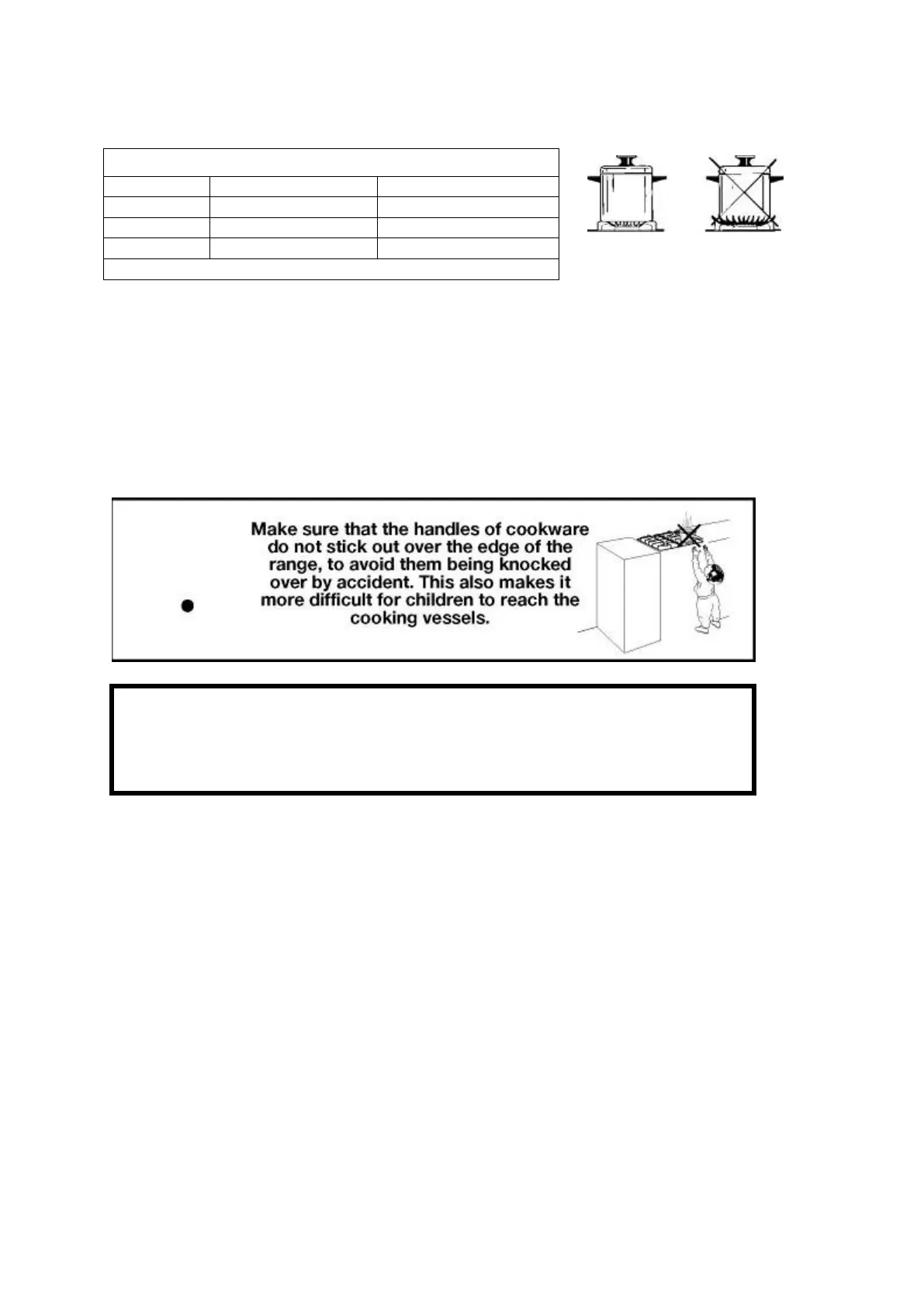 It is important that the diameter of the pots or pans suitably match the heating potential of the burners