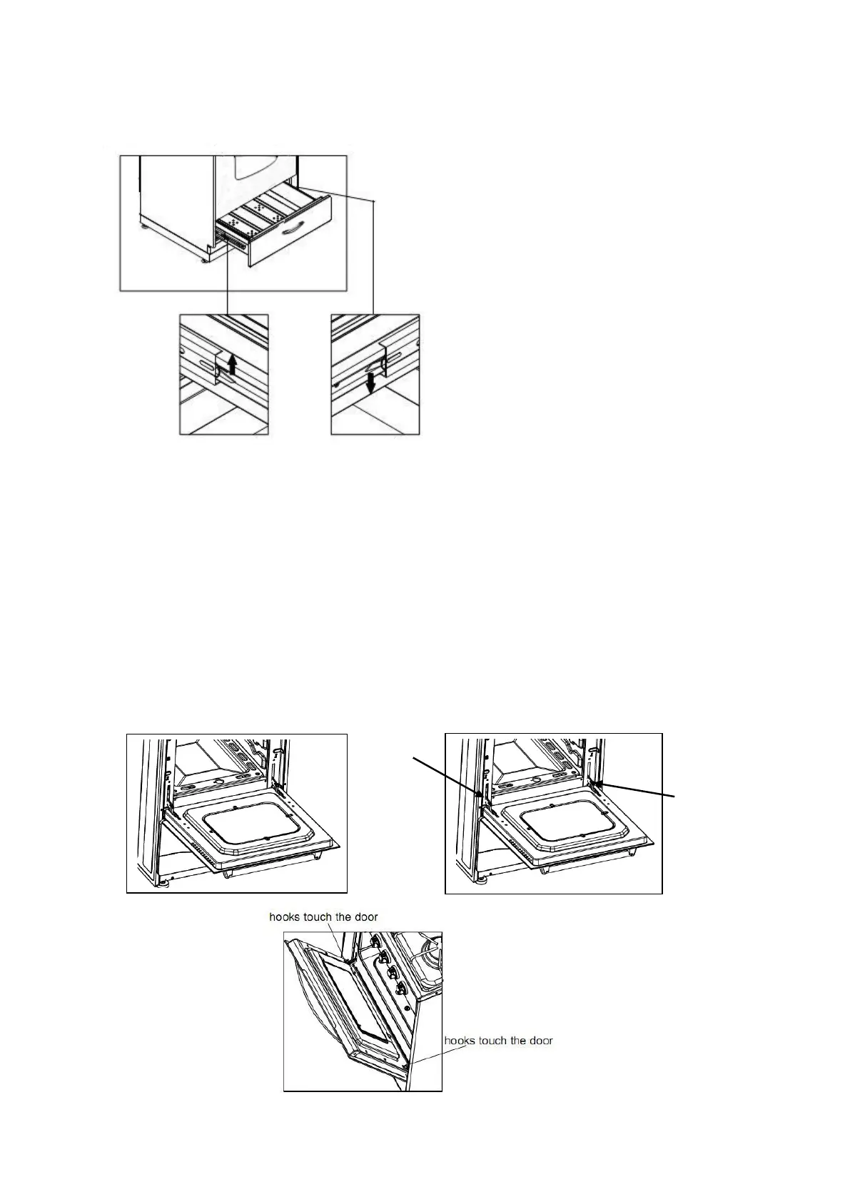 – Gently close the door and lift the door with two hands when the hooks touch the door.