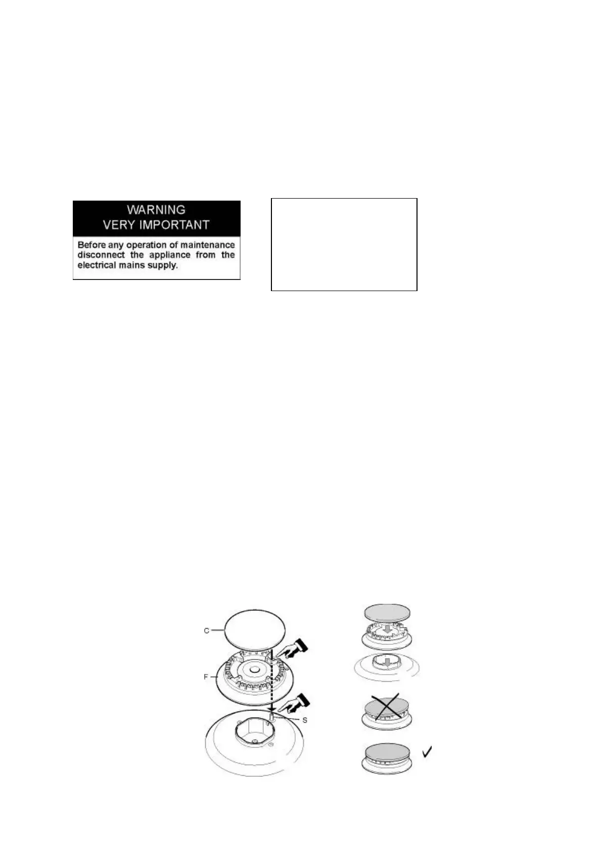 Es muy importante verificar que la hornilla propagadora de la llama “F” y la tapita “C” sean