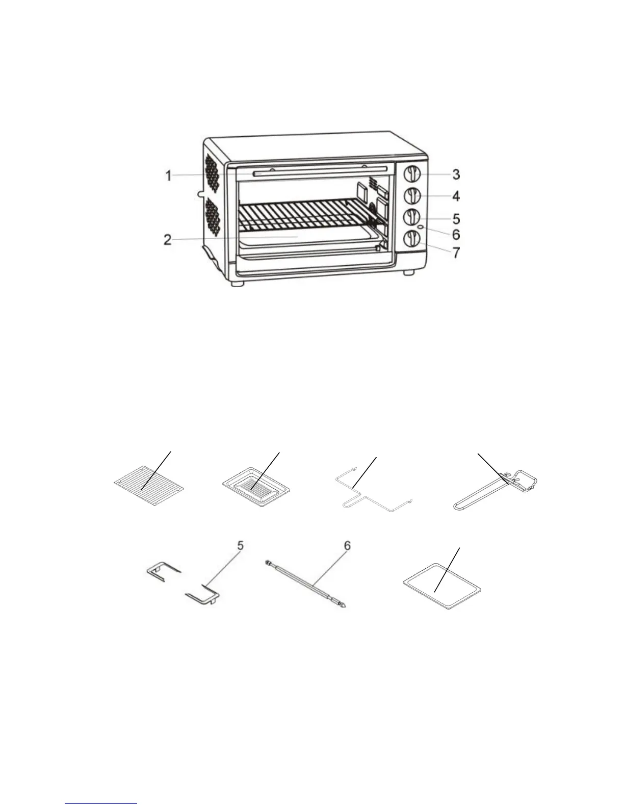 2. BAKE/BROIL/DRIP PAN 6. ROTISSERIE SKEWER