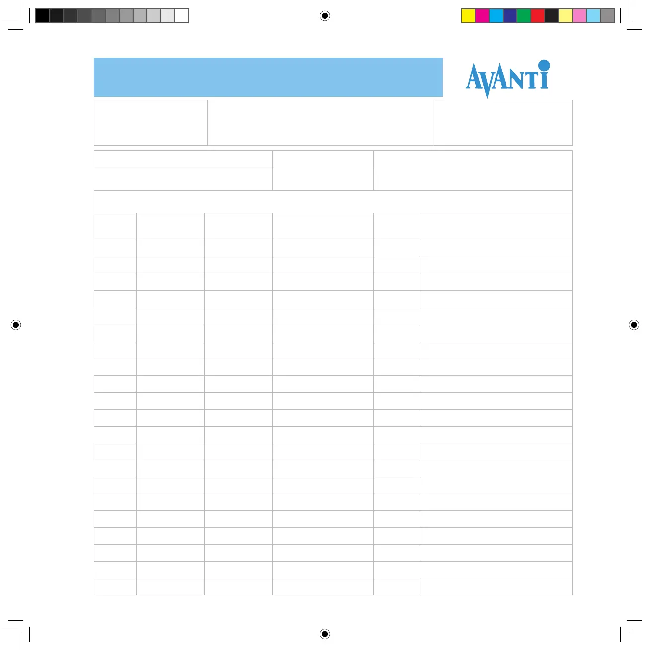 Avanti Runner 2000 - 12 Appendix D: Inspection Log Sheet