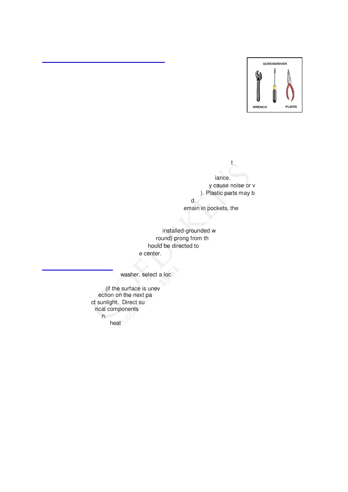 • Plug the washer into an exclusive properly installed-grounded wall outlet. Do not under any