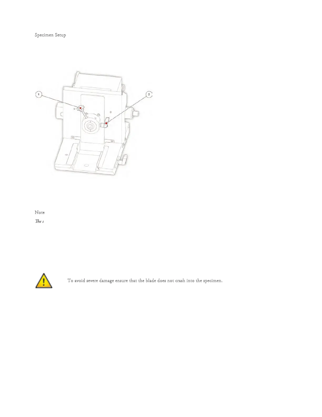 • Loosen the specimen head clamping lever to allow adjustment of the specimen parallel to the cutting edge.
