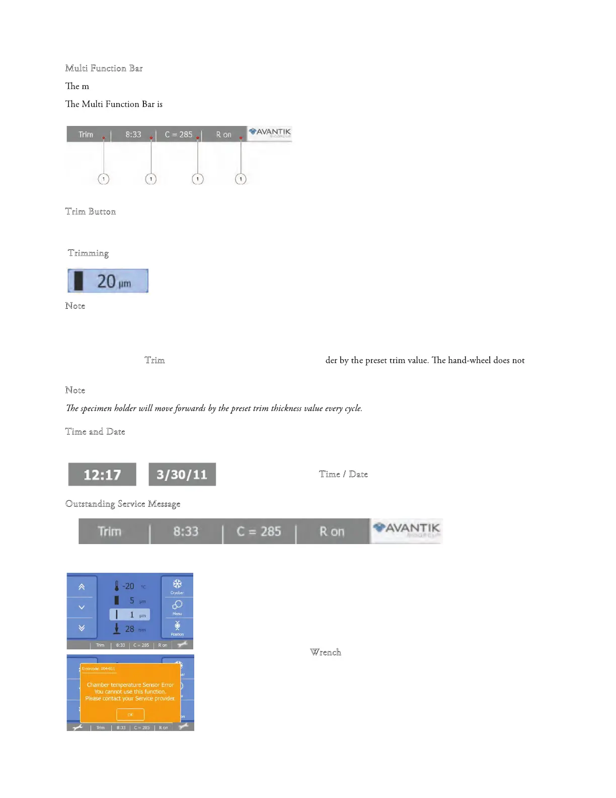 Avantik QS12 - Multi Function Bar; Trim Button; Trimming; Time and Date