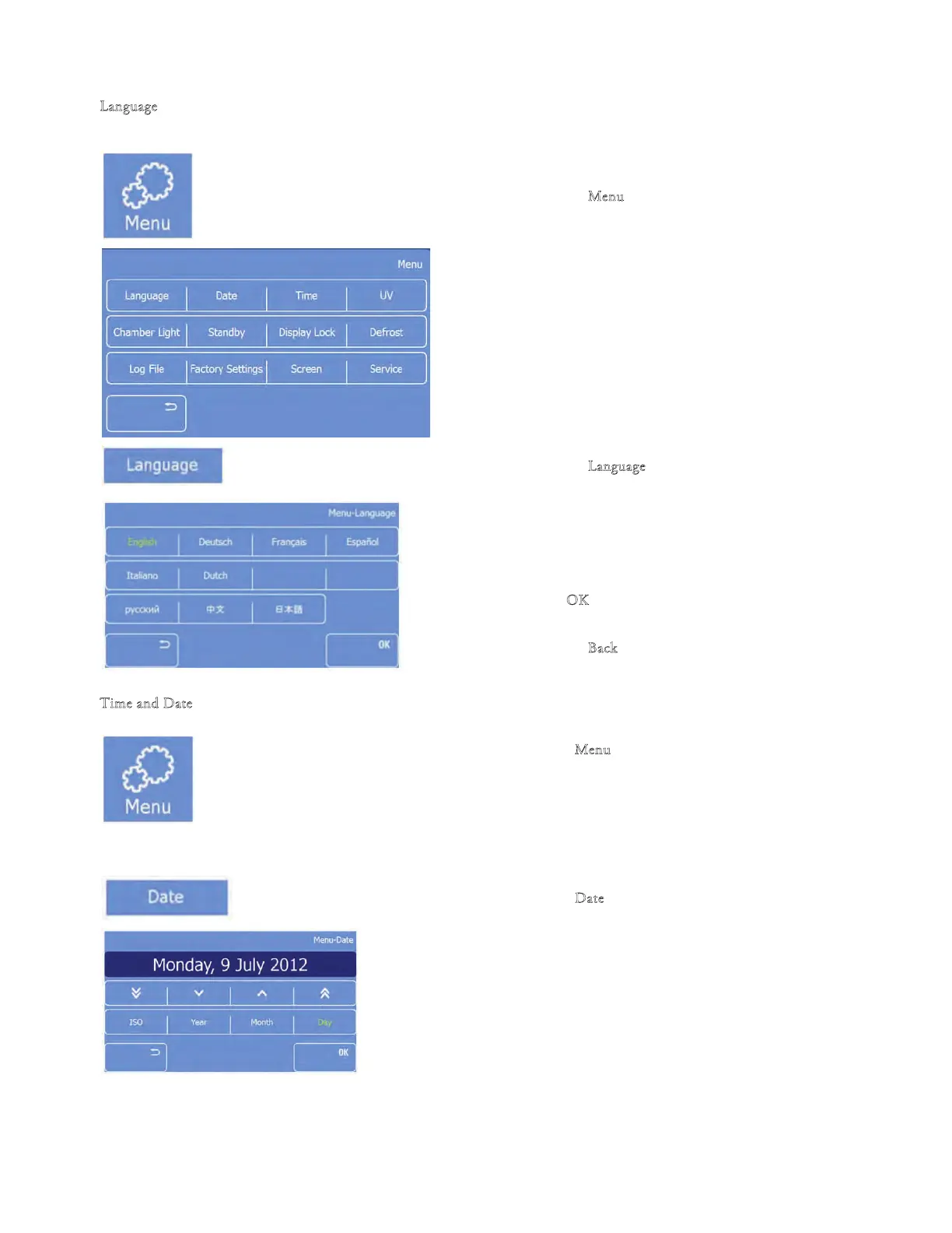• e Menu: Date screen will be displayed.