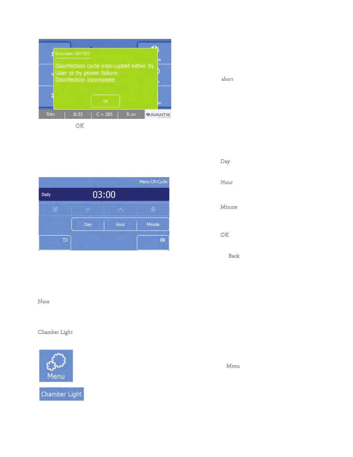 • Press ‘‘Cyclic” to set a programmed time for the UV cycle to start: