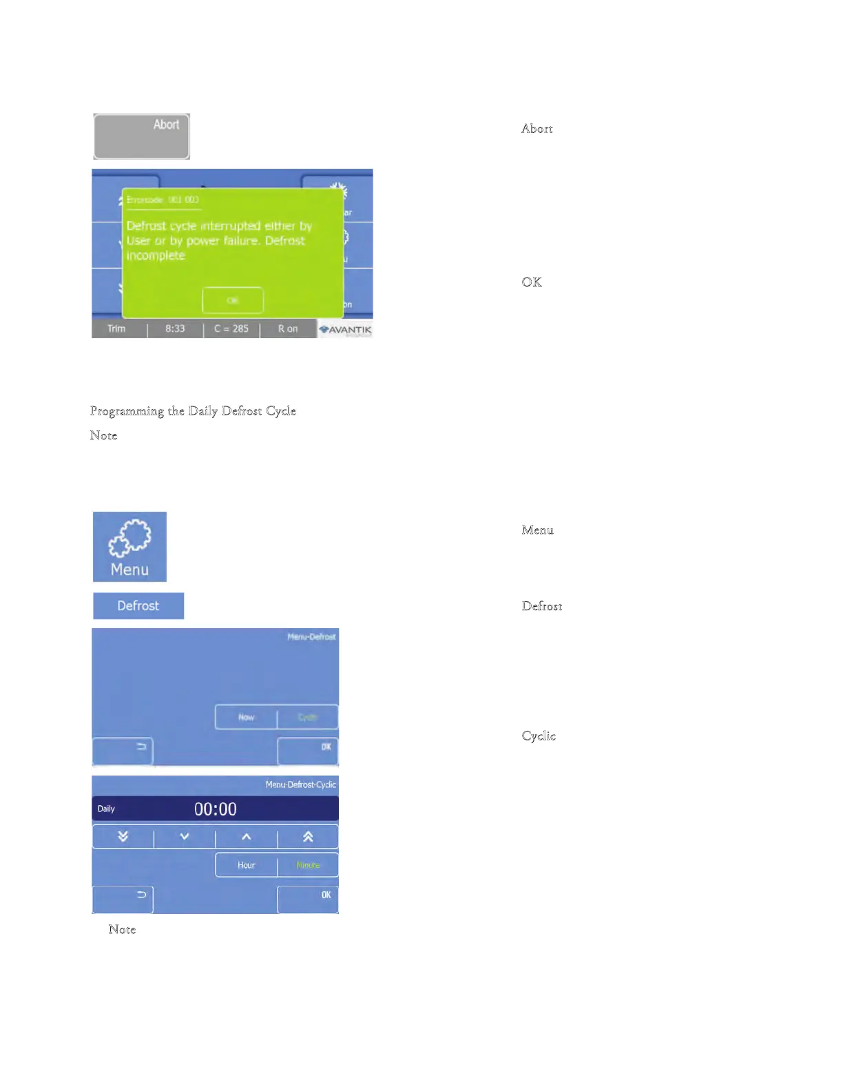 e time for the daily defrost cycle should be programmed outside of the normal working hours to avoid delays in the workow.