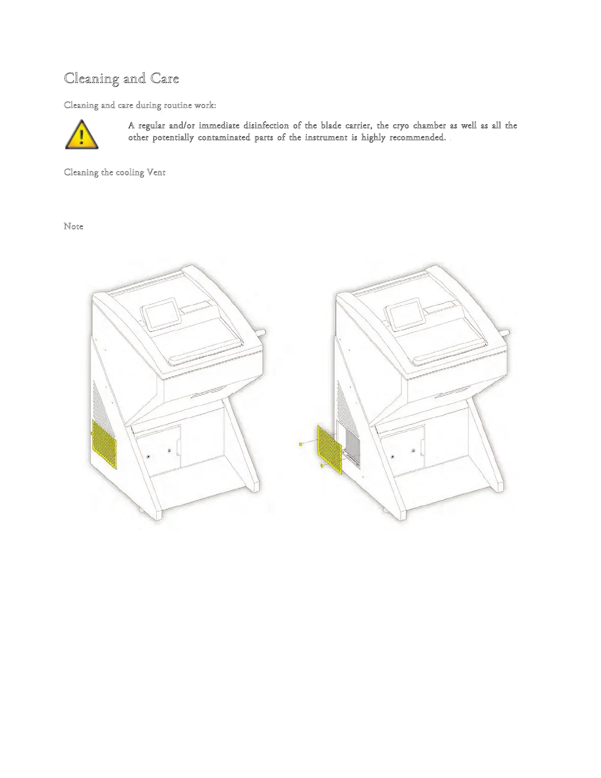 regular and/or immediate disinfection of the blade carrier, the cryo chamber as well as all the