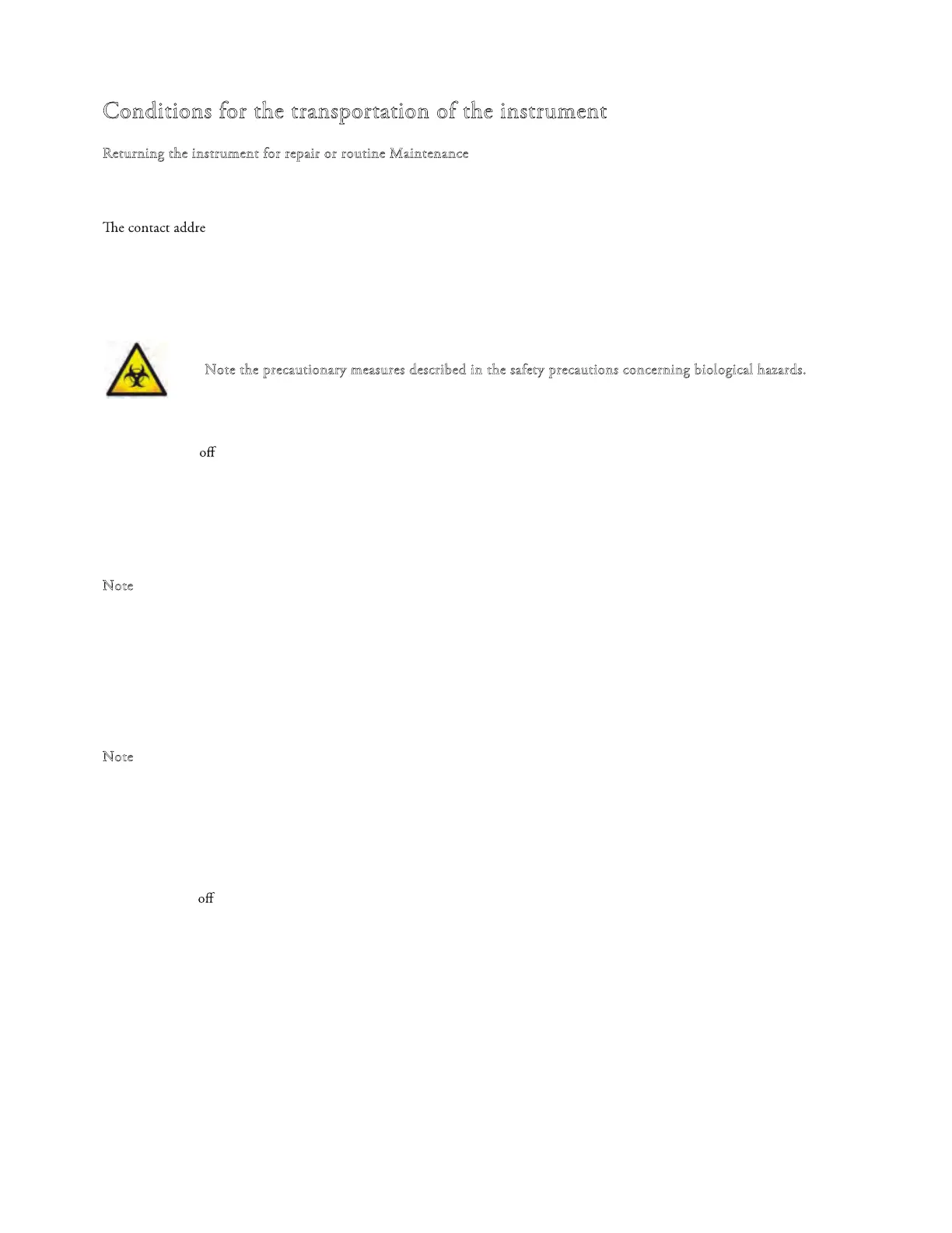 ote the precautionary measures described in the safety precautions concerning biological hazards.