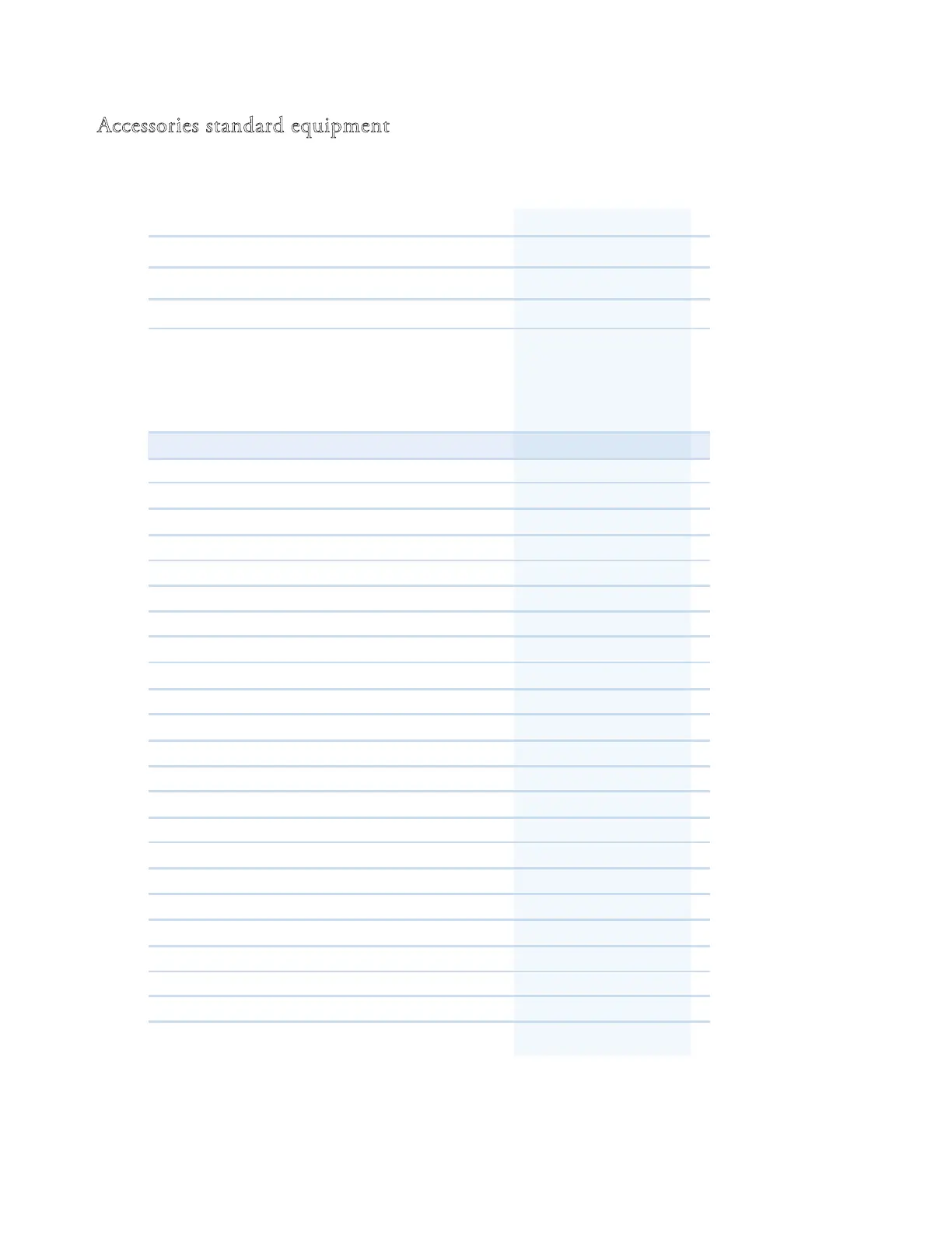 Accessories standard equipment