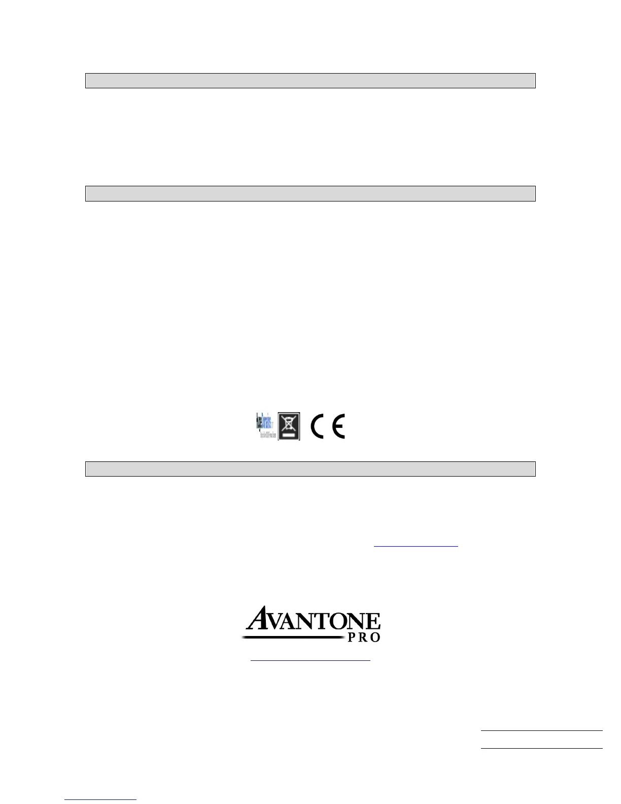 Avant Electronics AVANTONE microphones are warranted by Avant Electronics to be free from defects in materials and