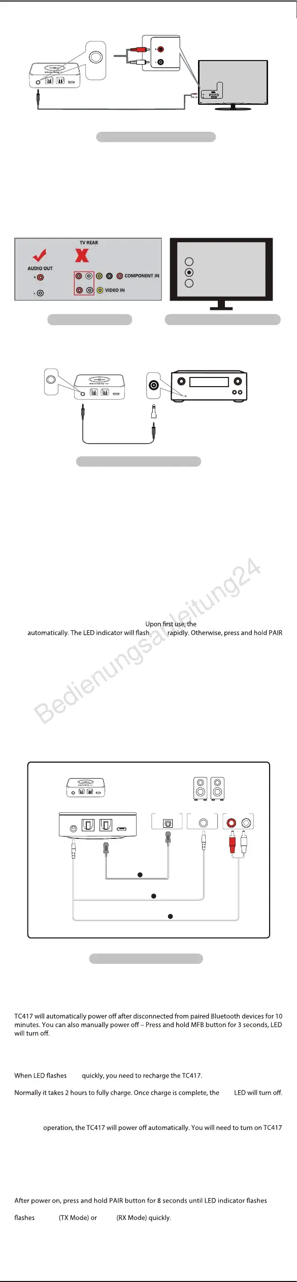 refer to Fig 4-1 Set up TC417 as Bluetooth receiver option A.