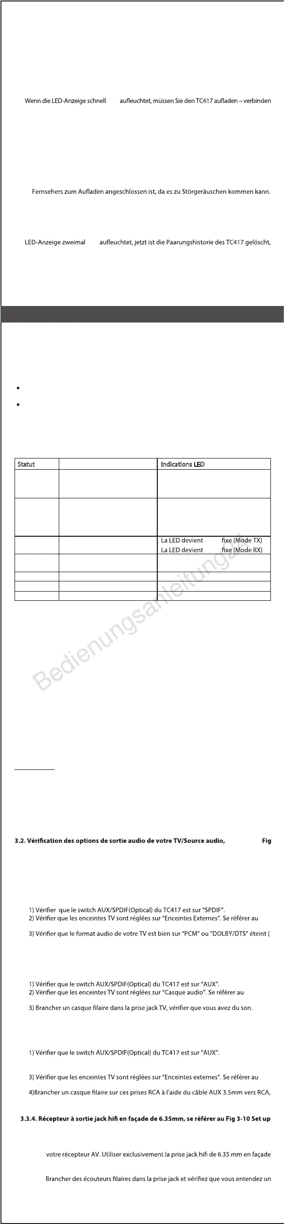 – Utiliser le TC417 en tant que récepteur Bluetooth (RX) – se référer au Point 4