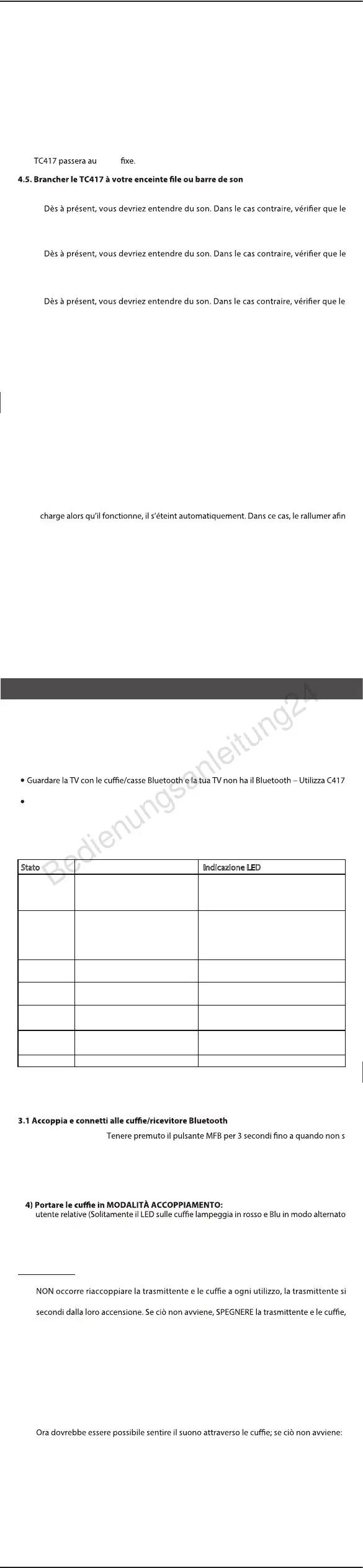 Al primo utilizzo, TC417 entrerà automaticamente in modalità accoppiamento. Il LED