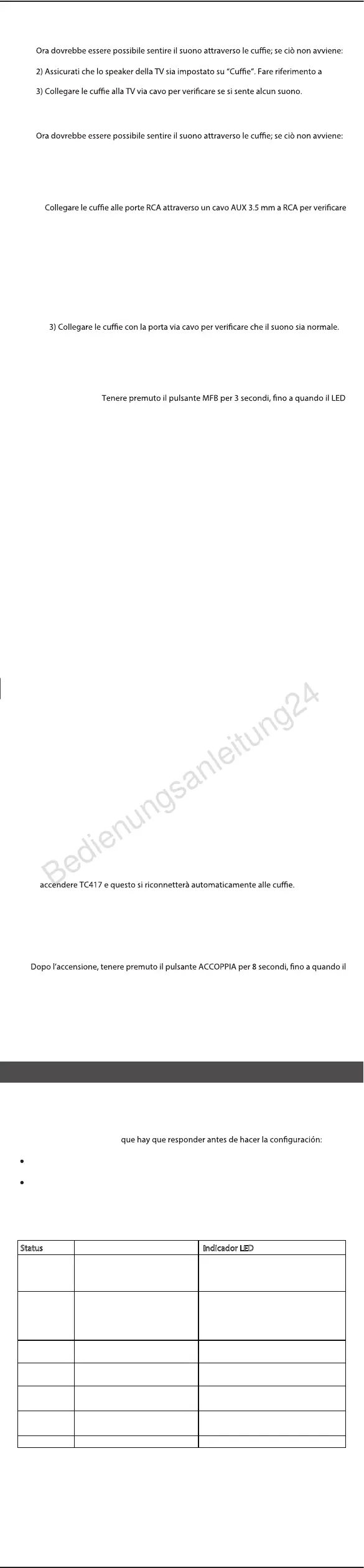 e ricercare “Avantree TC417” – selezionarlo e connettersi. Una volta connesso il LED su