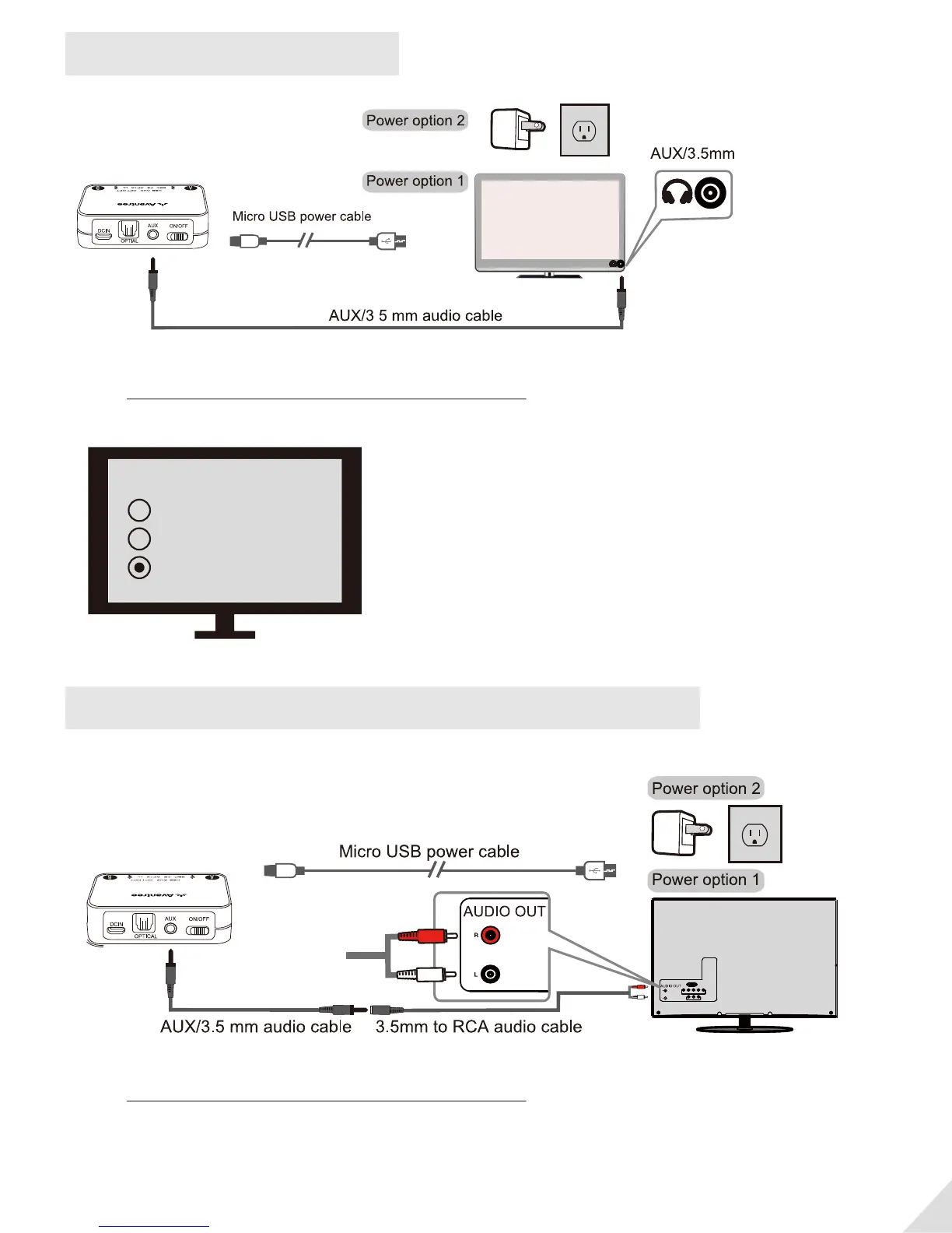 TVs with RCA audio out(Red/White ports labeled “AUDIO OUT”)