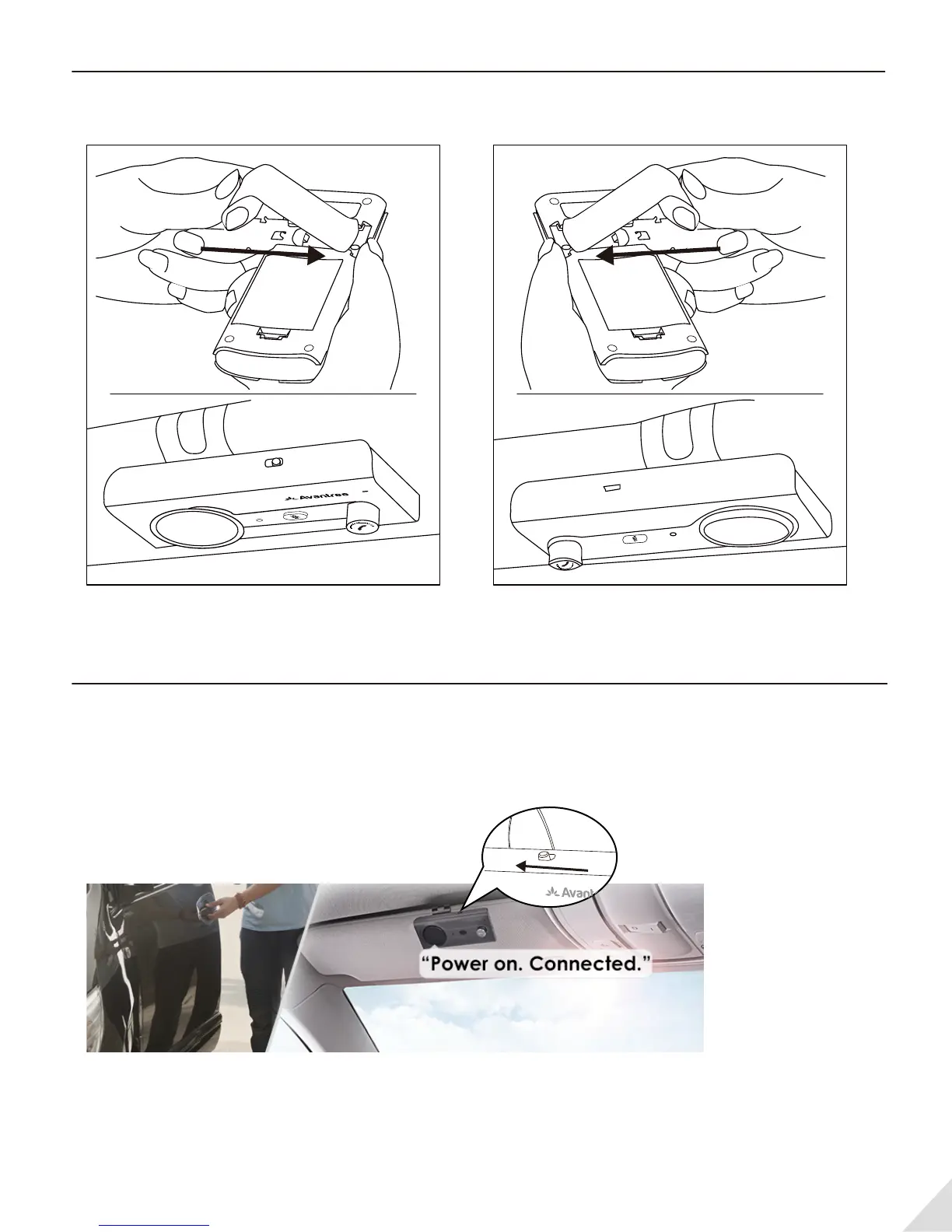Insert short end of clip into slot until it clicks in place / Attach to sun visor (2 types of installation)