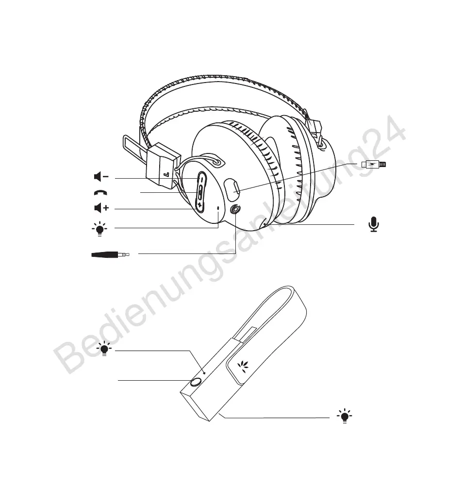 • Schalten Sie die Kopfhörer EIN – Halten Sie den Knopf 3 Sekunden lang gedrückt,