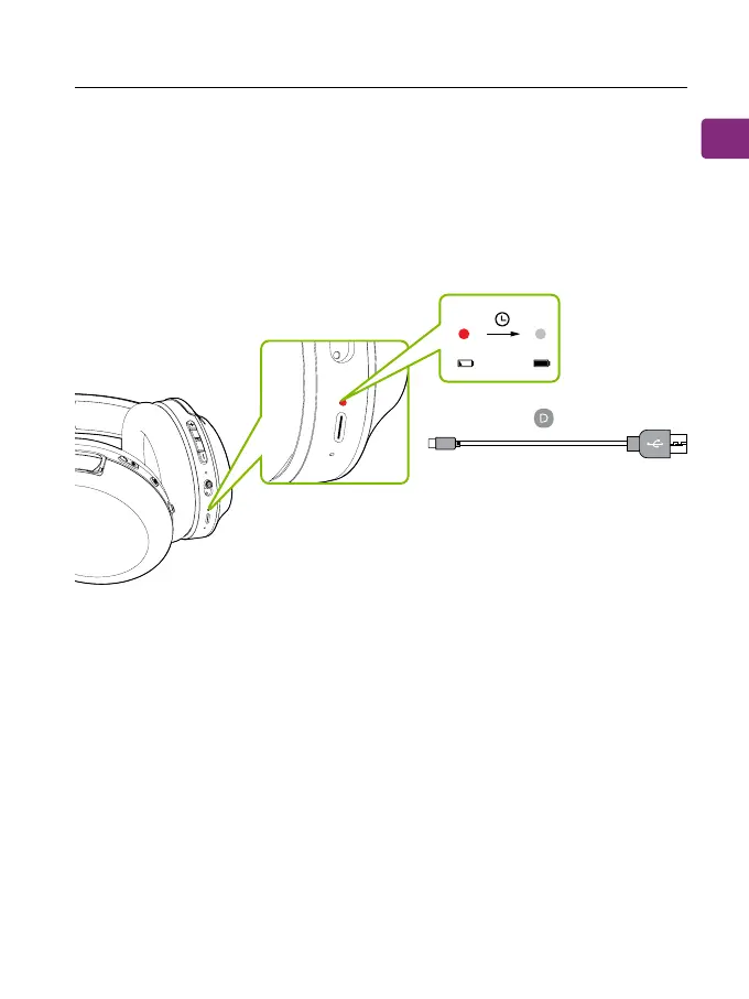 using the USB C charging cable (Figure D) and a USB adapter. A solid