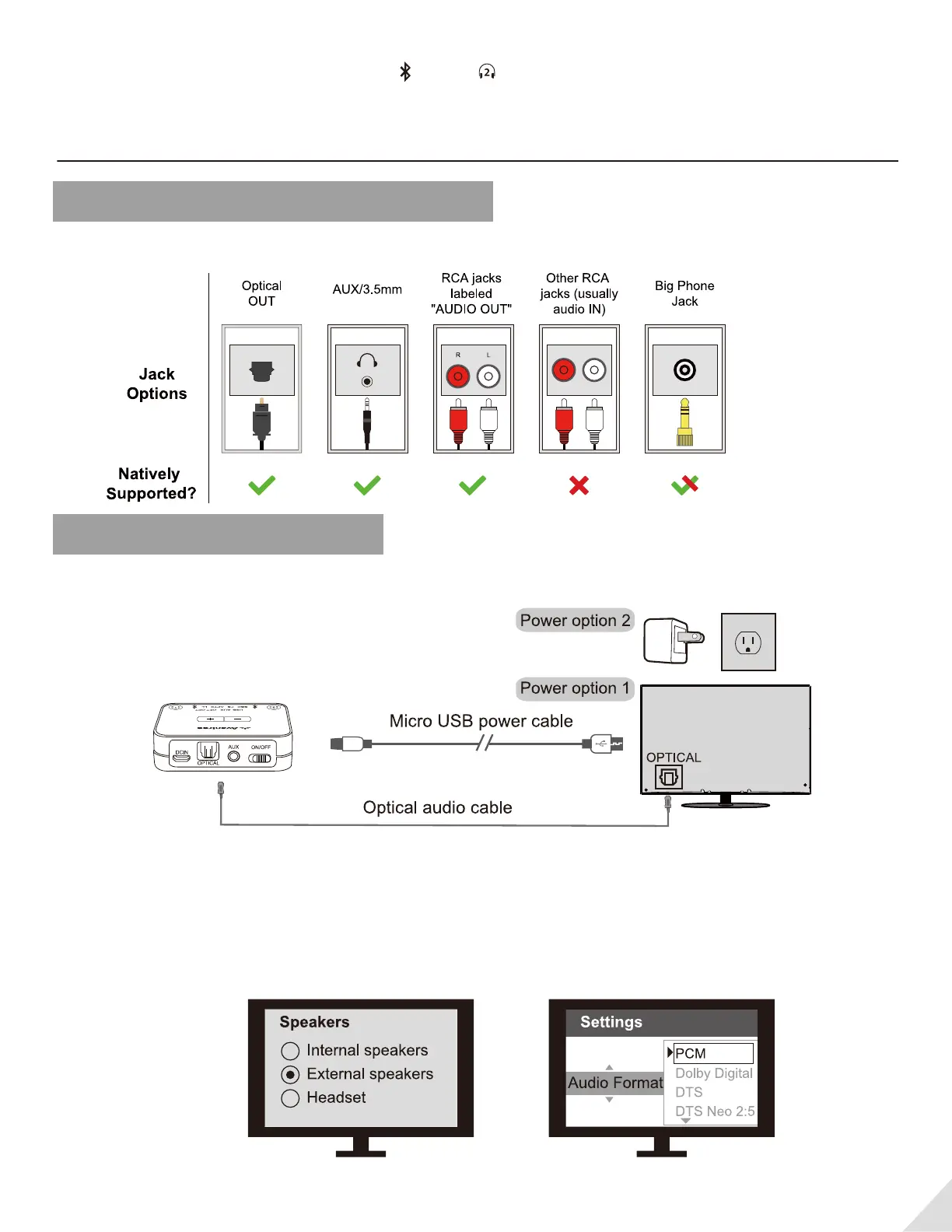 Ensure your TV’s Audio Format/Digital Sound Out setting is set to “PCM” or set the Dolby / DTS Digital setting to