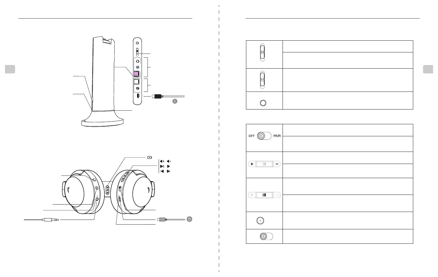 Cambie a la posición "ON / OFF" para encender / apagar los auriculares