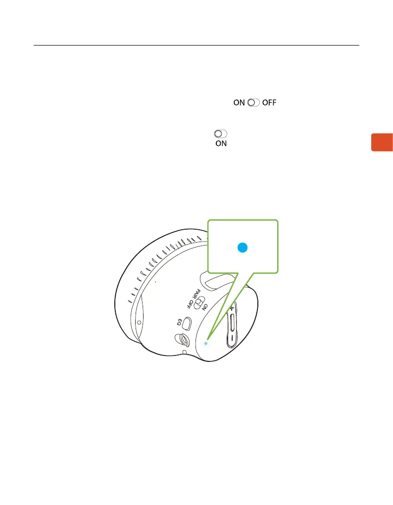 En los auriculares, deslice el interruptor a la posición ON.