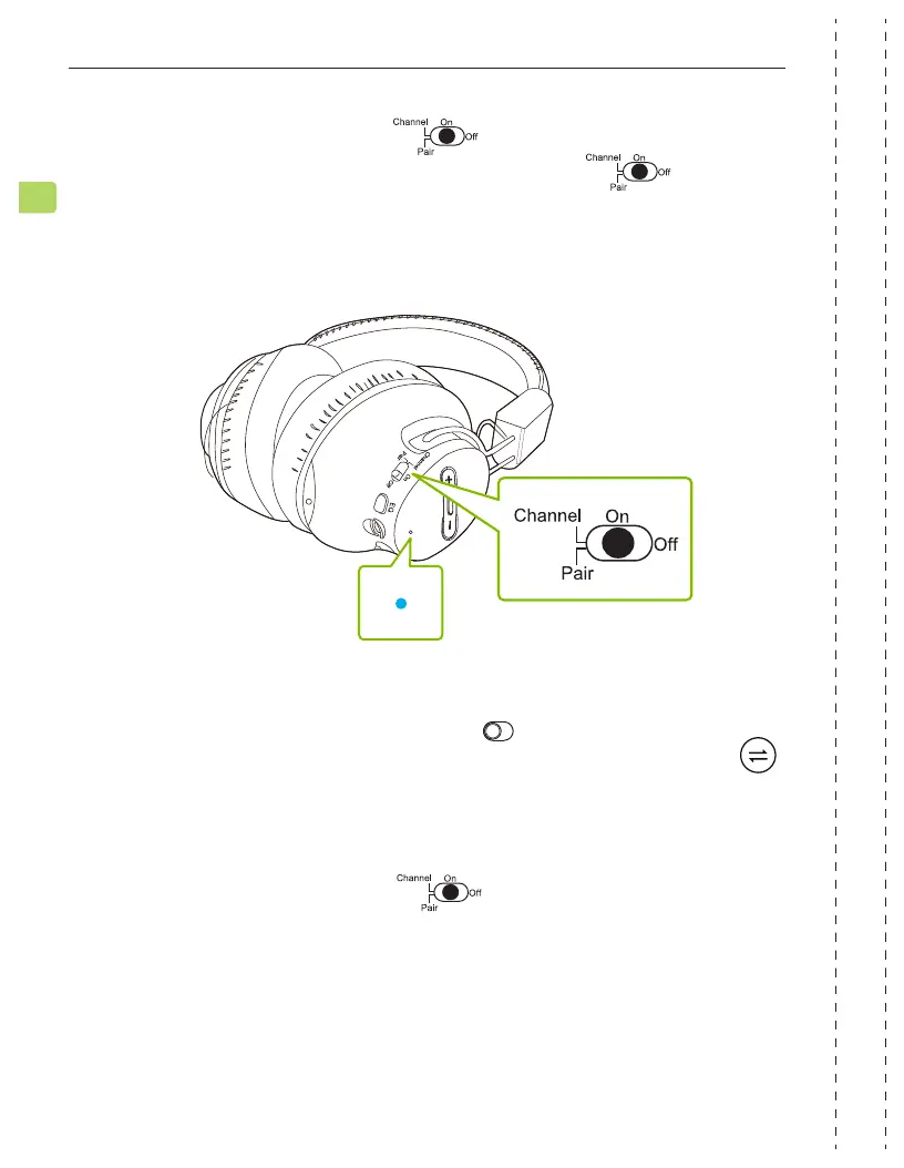 Slide one or both headphones’ switch to the CHANNEL position
