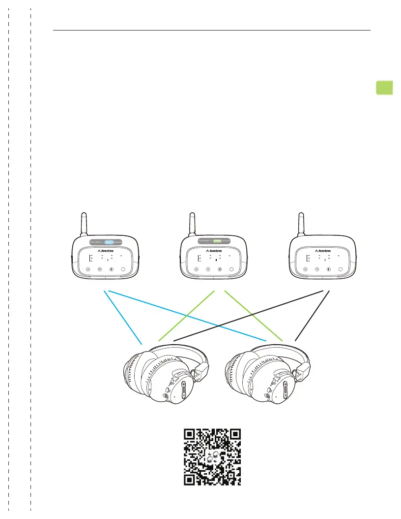 indicators on both the transmitter and headphones will turn solid WHITE.