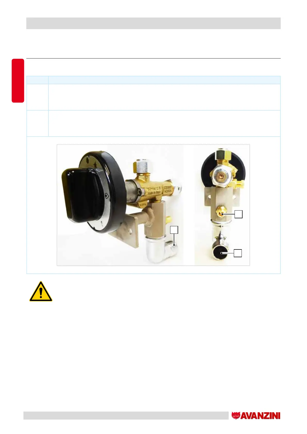 In case of insufcient pressure, the burner may experience malfunctions or switch off.